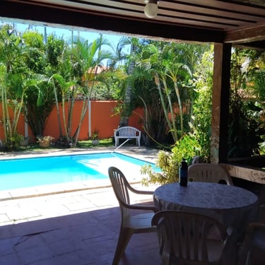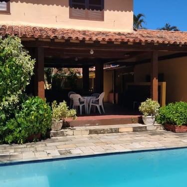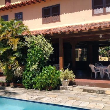 Valores diferentes em alta temporada e feriados Geribá 400 ms da praia. (5 minutos a pé até a praia) Com 7 quartos, 5 quartos com cama de casal, sendo 3 suítes, 1 quartos pequenos de solteiro , sala de estar com 3 ambientes Bar, sala de tv, sala de estar bem ampla, sala de jantar; 2 banheiros sociais, piscina ampla 4 x 8 Banheiro externo completo . Varadão amplo todo coberto . Churrasqueira coberta em area verde e tudo isto a 400 ms da praia (canto direito geriba). No valor do aluguel, luz e gás incluidos.